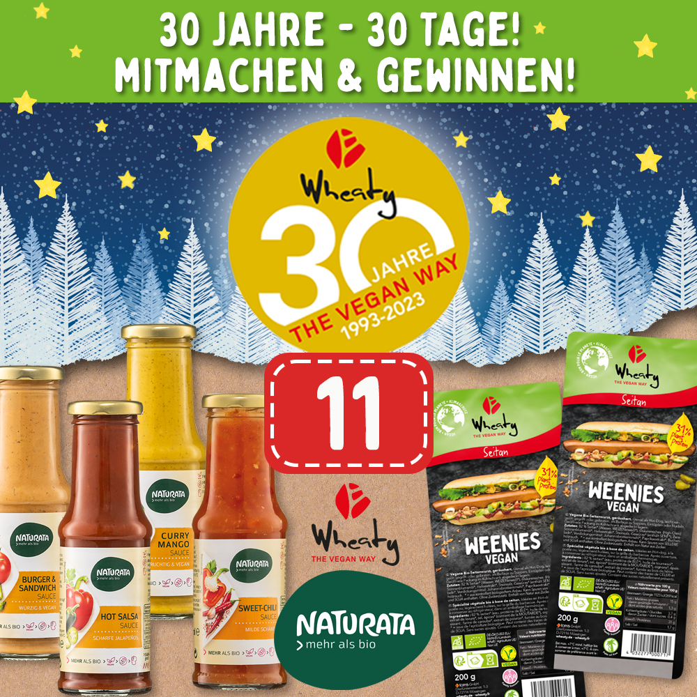Probiert mit etwas Glück selbst: Täglich verlosen wir Pakete mit unseren bio-veganen Fleisch- und Wurstalternativen und an ausgewählten Tagen Produktpakete und Gutscheine befreundeter Unternehmen, für die Bio-Lebensmittel und Nachhaltigkeit genauso wichtig sind wie für uns!