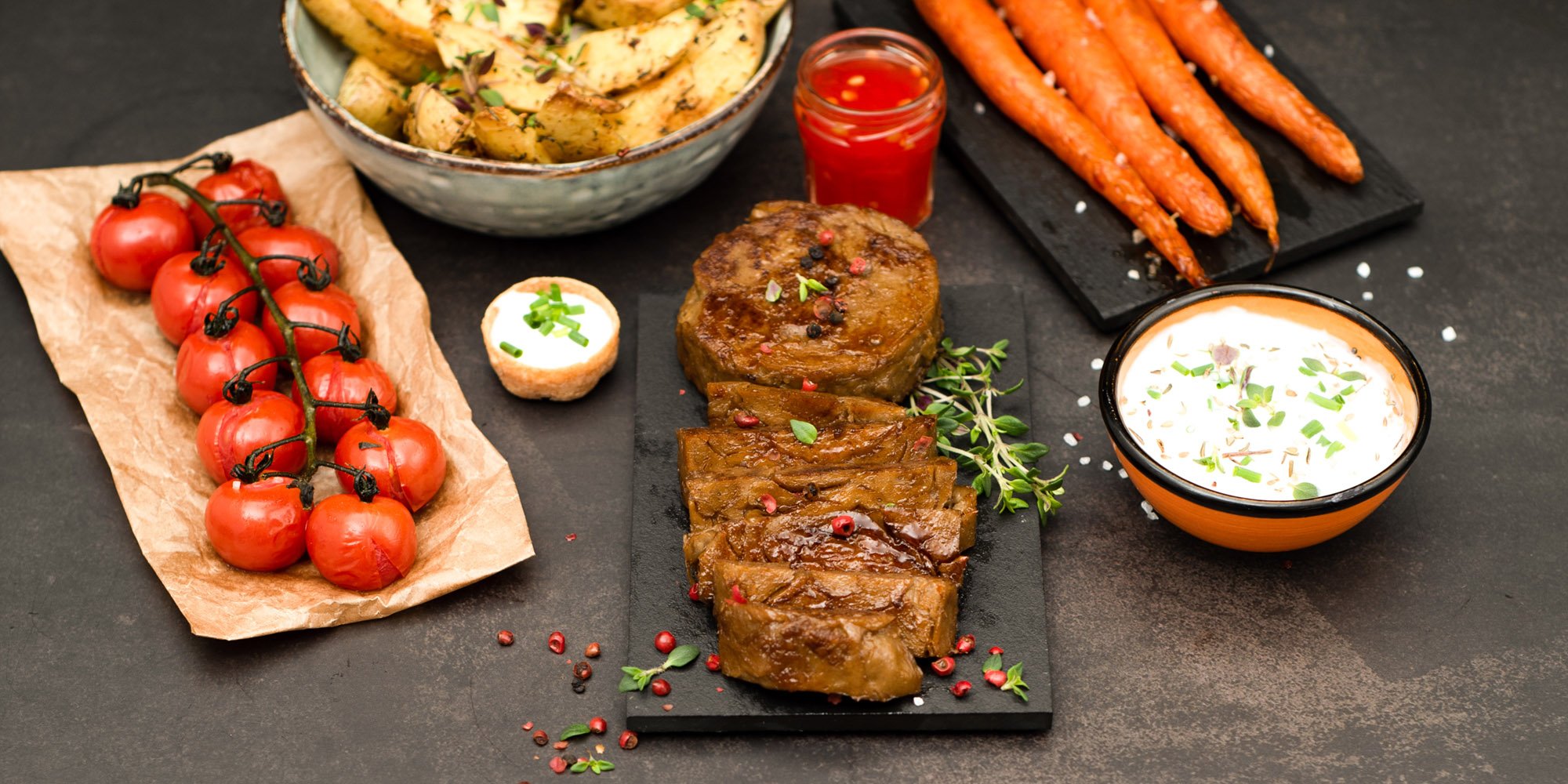 Mit unserer Merguez Antipasti-Platte mit Paprika-Hummus-Dip