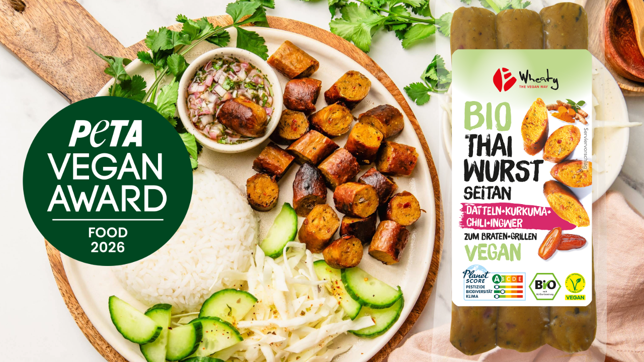 „Wheaty beweist mit der Thai-Wurst eindrucksvoll, wie innovativ, lecker und zeitgemäß vegane Food-Kreationen heute sein können. Pflanzliche Ernährung steht längst für Genuss, Vielfalt und Verantwortung – für Menschen, Tiere und unseren Planeten. Wir wünschen uns, dass noch viele weitere Marken diesen wegweisenden Ansatz aufgreifen und ihr Sortiment zukunftsorientiert weiterentwickeln. Herzlichen Glückwunsch zum PETA VEGAN AWARD in der Kategorie ‚Beste vegane Wurst‘!“, so Harald Ullmann, Mitgründer und 2. Vorsitzender von PETA Deutschland.