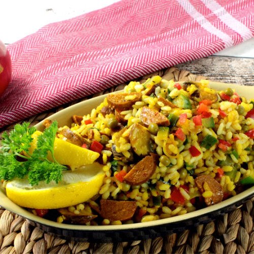 Dieses Rezept bringt eine spannende Fusion aus Bratwurst und frischem, mediterran inspiriertem Gemüse auf den Tisch. Vegane Bratwürste von Wheaty werden dabei knusprig angebraten und mit selbstgemachtem Fladenbrot serviert. Das farbenfrohe Gemüse, das mit Sojasauce und Zitronenschale verfeinert wird, sorgt für einen aromatischen und frischen Kontrast. 🌱🌍