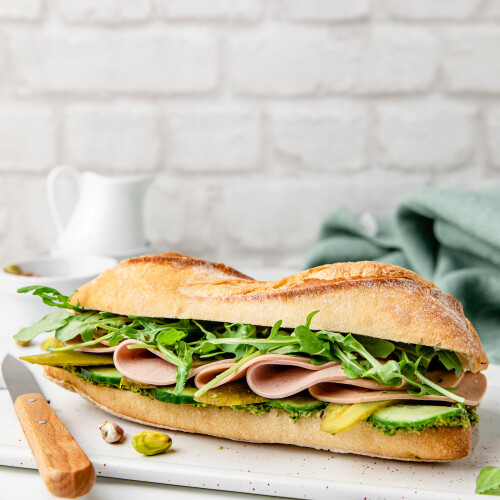 • Das Gemüse jeweils zwischen zwei Fladenbrote verteilen und zusammen mit den Würsten servieren. Mit Basilikum garnieren.